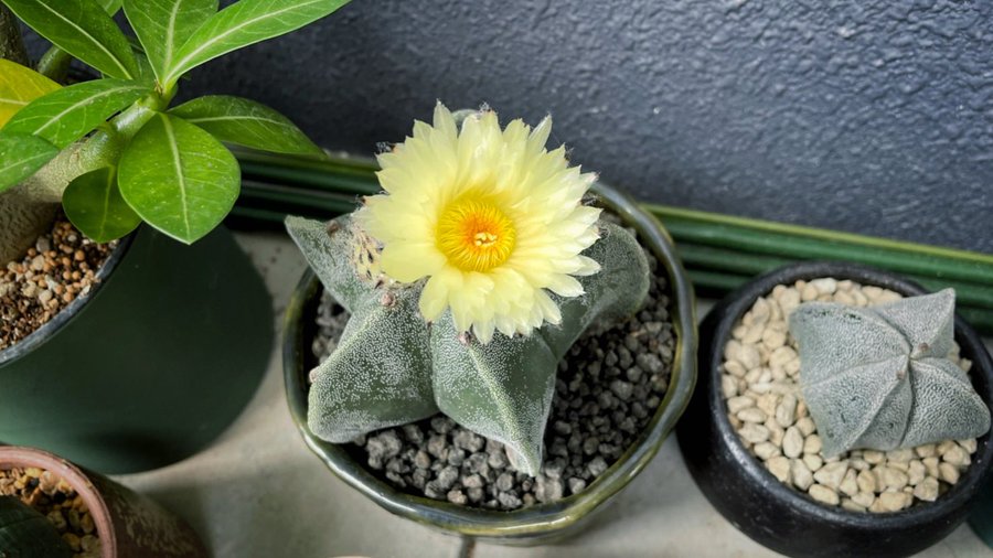 火曜日。ランポー玉の花が咲いた。ガーベラのようなかわいい花だ。うれしい。